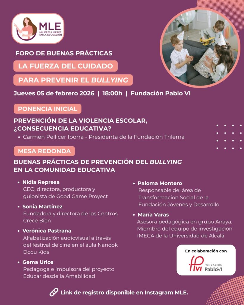 Con este enfoque se celebra el Foro de Buenas Prácticas: La fuerza del cuidado para prevenir el bullying, un espacio de reflexión y diálogo en torno a experiencias reales de prevención de la violencia en contextos educativos.